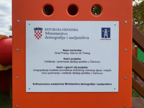 U sklopu Poziva za dodjelu bespovratnih sredstava „Dostupnost kvalitetnih i priuštivih sadržaja za djecu u lokalnim zajednicama kroz opremanje i uređenje igrališta za djecu“ Ministarstva demografije i useljeništva uspješno je realiziran još jedan projekt Grada Preloga - „Uređenje i opremanje dječjeg igrališta u Čehovcu“. Ukupna vrijednost projekta nakon realizacije iznosi 52.540,00 eura, od čega Ministarstvo demografije i useljeništva sufinancira 60% ukupno prihvatljivih troškova i to u iznosu 31.446,75 eura.