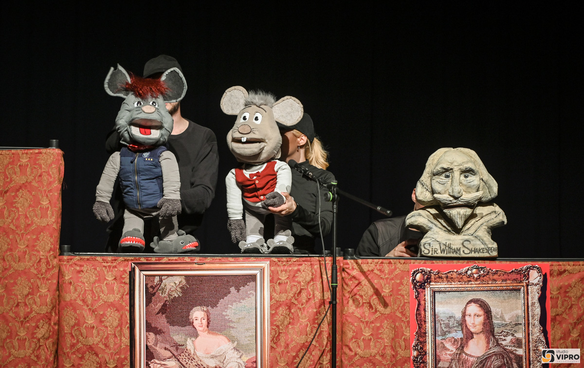 Dva miša zovu se Miš Maš i Miš Pliš, a svojoj potrazi smišljaju hrabar (i pomalo nepromišljen) plan da se ušuljaju u – kako vjeruju – tvornicu sira. No, spletom duhovitih okolnosti, umjesto u carstvo sira zalutaju u čudesan svijet umjetnina – muzej. Tamo započinje njihova neobična noćna pustolovina. Među izloženim djelima susreću razne skulpture, slike i – bistu slavnog Williama Shakespearea, koja iznenada oživi. Shakespeare se pridružuje njihovoj avanturi i pomaže im pronaći rješenje – ne samo kako doći do hrane, nego i kako razumjeti vrijednost znanja, kreativnosti i prijateljstva. Dramaturg predstave je Miro Gavran, originalnu glazbu skladao je Nikola Čeme, dok su u glavnim ulogama nastupali Filip Tomičić, Luka Stilinović i Zorana Vukić Gavran.
