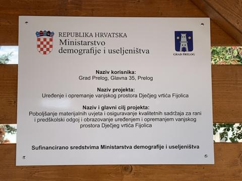 Uspješno je završen projekt „Uređenje i opremanje vanjskog prostora Dječjeg vrtića Fijolica“ koji je Grad Prelog provodio u okviru Poziva za dodjelu bespovratnih sredstava „Dostupnost kvalitetne skrbi za djecu u lokalnim zajednicama kroz poboljšanje materijalnih uvjeta u dječjim vrtićima“ Ministarstva demografije i useljeništva. U sklopu projektne aktivnosti odrađeni su radovi uređenja i opremanja vanjskog prostora dječjeg vrtića i to pripremni, zemljani i betonski radovi, radovi izrade i postave igrala i „učionice na otvorenom“ te uređenje vanjskog prostora.