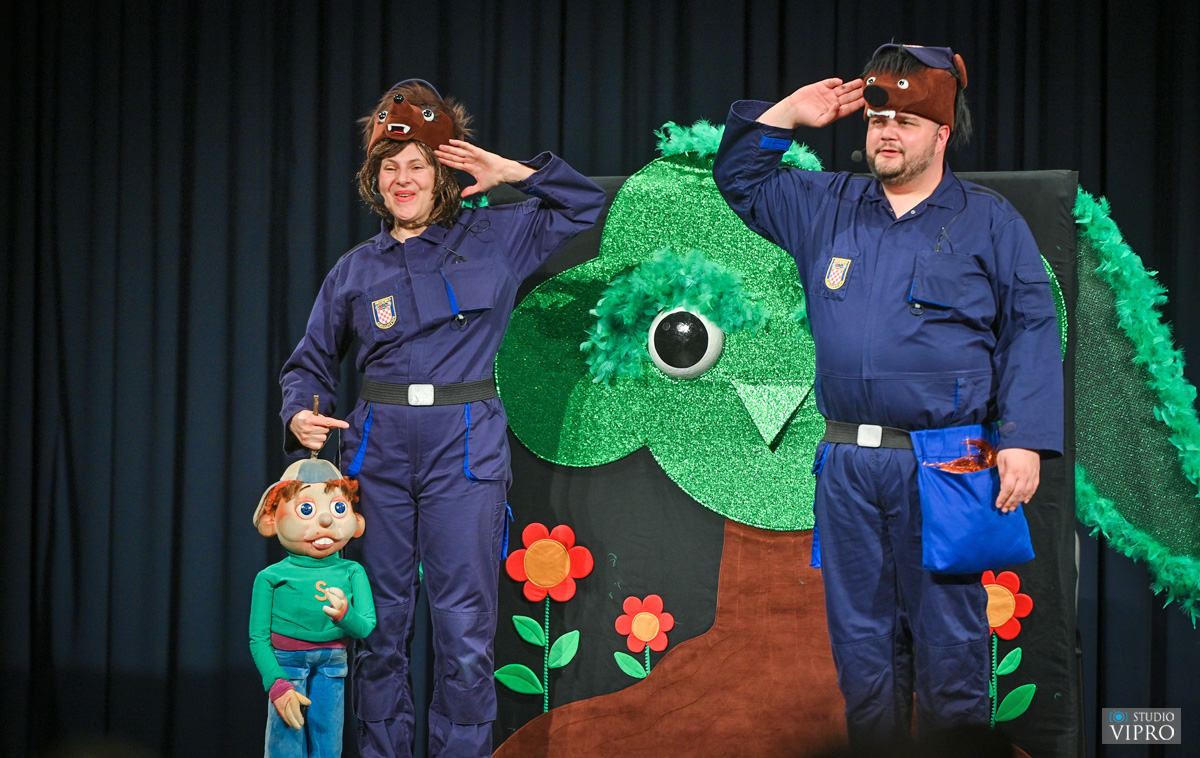 Kao, na neki način, nastavak kazališnog vikenda u Prelogu, Dom kulture Grada Preloga ugostio je, u ponedjeljak 31. ožujka, Kazalište „Smješko“ sa zanimljivom dječjom predstavom naziva „Medo i Kuna, policajci u akciji“. Najnovija je to, vesela, interaktivna predstava Kazališta „Smješko“. Na djeci vrlo pristupačan, zanimljiv i pomalo smiješan način predstava govori o opasnostima kojima su djeca danas izložena korištenjem mobitela i interneta. Glavni likovi, Medo i Kuna su šumski policajci. Jednog dana u svojoj ophodnji šumom susreću dječaka u šumi koji ima dogovor za tajni susret s nepoznatim prijateljem kojeg je upoznao preko interneta i čiji susret bi trebao biti tajna. Uz razne zgode i nezgode Mede i Kune te dječaka, predstava uči i upozorava, ne samo djecu već i roditelje kojim sve opasnostima mogu djeca biti izložena i kako trebaju postupiti. Autorica teksta i režije je Mirta Zečević, a u predstavi su glumili Luka Juričić i Mirta Zečević. Program je bio sufinanciran sredstvima Ministarstva kulture i medija Republike Hrvatske.