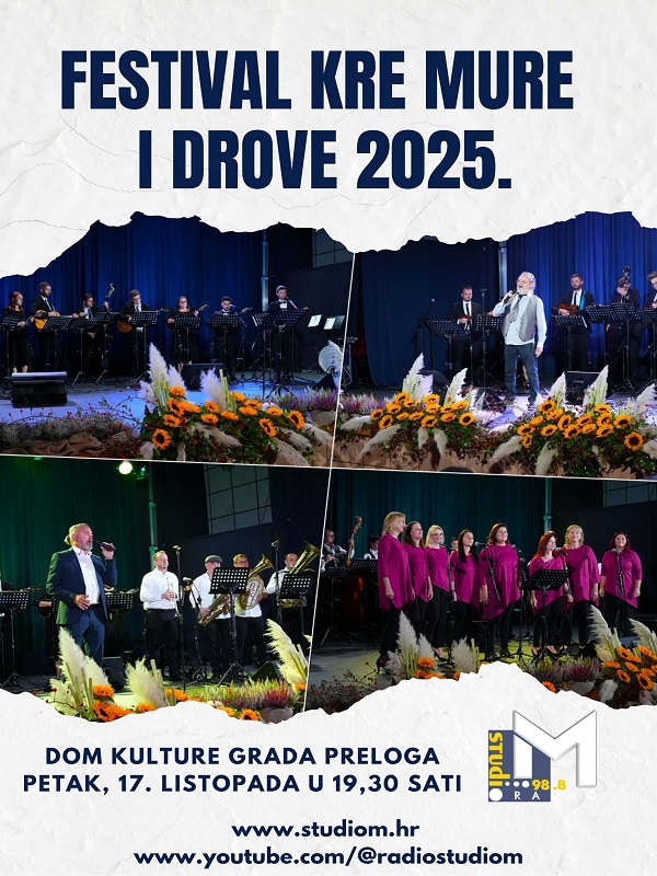 22. festival Kre Mure i Drove bit će održan ovog petka, 17. listopada u Domu kulture Grada Preloga s početkom u 19:30 sati, u organizaciji Studija M, a pod generalnim pokroviteljstvom Grada Preloga. Ulaz je slobodan, a ljubitelje kajkavske glazbe i reči čeka 11 novih pjesama i bogati popratni program.