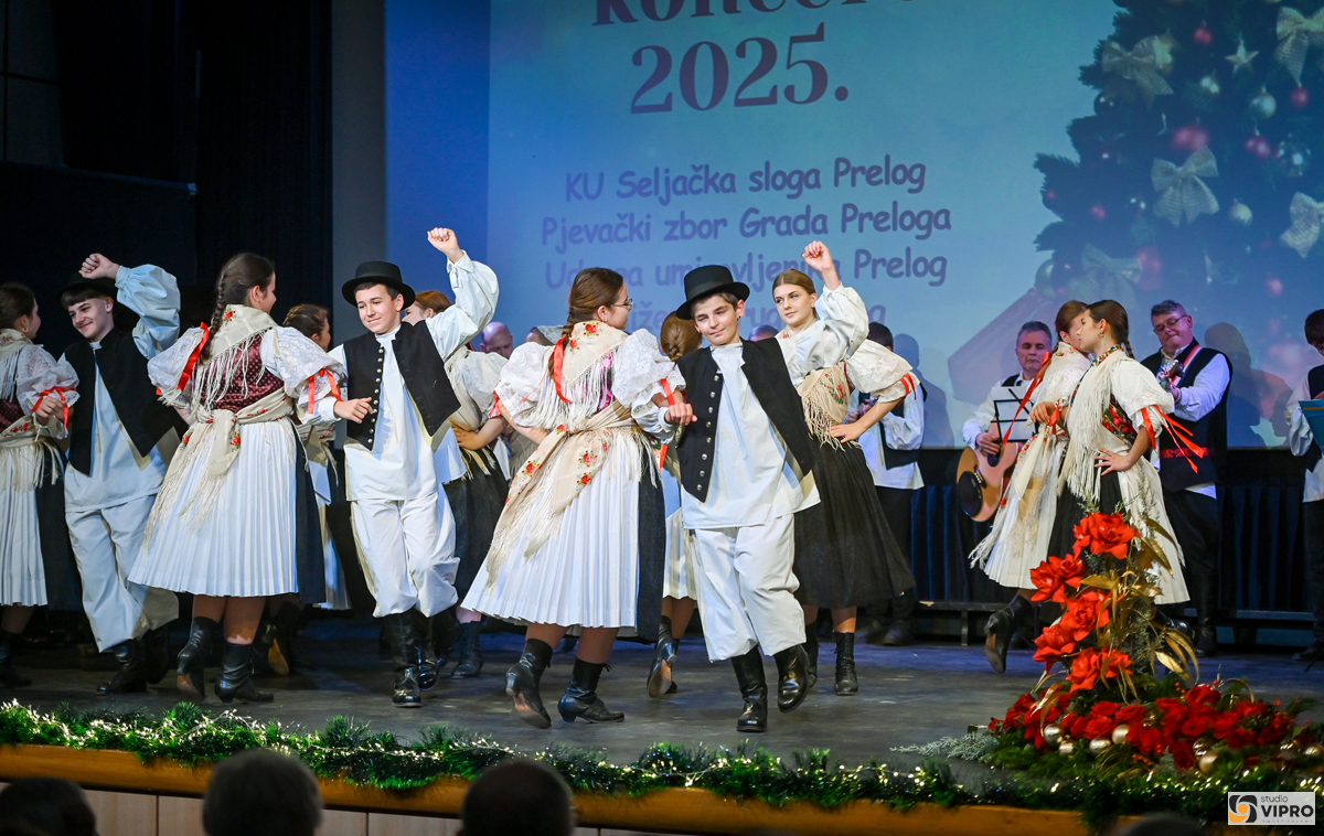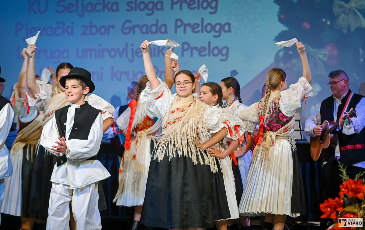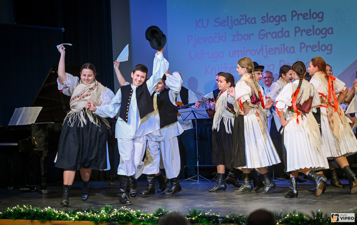 U programu, kroz koji je vodio Željko Sokač, sudjelovali su članovi Pjevačkog zbora Udruge umirovljenika Prelog, starija skupina i tamburaši Kulturne udruge Seljačka sloga Prelog, članovi Književnog kruga Prelog Sanja Rašan i Vinko Rojko, zatim Pjevački zbor Grada Preloga, Plesno scenska sekcija Udruge umirovljenika Prelog sa scenskim prikazom priprema za Božić pod nazivom „Poštar“ te na kraju programa dječja sekcija Kulturne udruge Seljačka sloga Prelog. Najmlađe sudionike, ali i posjetitelje koncerta razveselio je dolazak Svetog Nikole, koji je sve njih, ali i voditelje udruga nagradio prigodnim poklonima. "Neka vas ljubav i mir Božića prati kroz cijelu godinu, a radost blagdana ispuni svaki trenutak vašeg života“, bila je zajednička poruka svih sudionika na kraju koncerta.