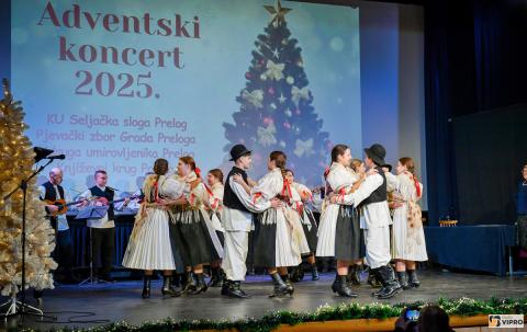Adventski koncert udruga okupio je, u nedjelju 7. prosinca 2025. godine, udruge s područja Grada Preloga, udruge koje djeluju u području kulture te su i ovu priliku iskoristile da pokažu sve ono što rade i pripremaju kroz godinu. Koncert je održan na drugu nedjelju Došašća, kada se pali druga svijeća na adventskom vijencu. Prvi adventski vijenac, u obliku kakvoga poznajemo, nastao je 1839. godine u Hamburgu. Načinio ga je evangelistički pastor Johann Hinrich Wichren, osnivač doma za siromašnu djecu. Želeći djeci slikovito pojasniti isčekivanje Božića, konstruirao je drveni krug od kotača zaprežnih kola na koji je postavio 19 malih crvenih svijeća i 4 veće bijele svijeće. Svaki dan palili bi jednu malu crvenu svijeću, a nedjeljom veću, bijelu. Vijenac (odnosno kotač) se kroz vrijeme modificirao i ukrašavao zimzelenim grančicama, a s vremenom drvo je u potpunosti zamjenjeno zimzelenim granjem.