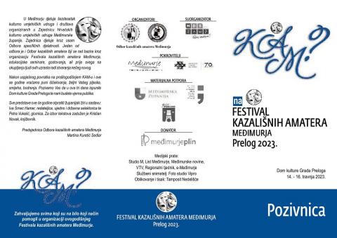 Dom kulture Grada Preloga, i ove će godine, ugostiti Festival kazališnih amatera Međimurja. Festival kazališnih amatera organizira Zajednica hrvatskih kulturno umjetničkih udruga Međimurske županije, a ove će se godine održati od 14. do 16. travnja.