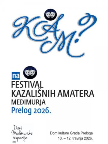 Dvadeset i deveti Festival kazališnih amatera Međimurja (KAM) održat će se u Prelogu, u Domu kulture Grada Preloga, od 10. do 12. travnja 2026. Ova tradicionalna manifestacija okuplja najbolje amaterske kazališne družine iz Međimurja, a organizira je Zajednica hrvatskih kulturno umjetničkih udruga Međimurske županije, uz Kulturnu udrugu Seljačka sloga Prelog. Državna selektorica je Gordana Ostović, kazališna kritičarka, a uz nju, u županijskom žiriju je i glumac Duravko Sidor, dok će najbolji amaterski dramski tekst i ove godine odabrati književnik Kristian Novak. Otvorenje manifestacije predviđeno je za petak, 10. travnja, u 15 sati, a kompletan program možete pronaći u prilogu.