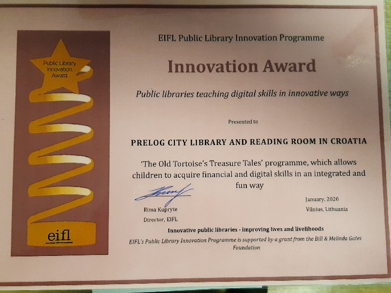 U Gradskoj vijećnici Grada Preloga, gradonačelnik Ljubomir Kolarek primio je tim Knjižnice i čitaonice Grada Preloga, Maju Lesinger i Natašu Novak, dobitnice prestižne međunarodne nagrade EIFL. Knjižnica i čitaonica Grada Preloga jedna je od tri ovogodišnje dobitnice prestižne međunarodne nagrade za inovacije u području digitalne pismenosti i razvoja digitalnih vještina korisnika javnih knjižnica. Naime neprofitna organizacija EIFL (Electronic information for libraries), osnovana 1999. godine, djeluje globalno, putem knjižnica u preko 60 zemalja u svijetu. Cilj joj je omogućiti dostupnost digitalnim informacijama i znanju na svim kontinentima svijeta. Knjižnica i čitaonica Grada Preloga je treća knjižnica u Hrvatskoj koja je dobila ovu nagradu, te je tako stala uz bok puno većim knjižnicama, onima u Rijeci i Koprivnici koje su kao i preloška, nositeljice priznanja Knjižnica godine. Ovom nagradom je rad KIČ Prelog uzdignut na međunarodnu razinu te je njena vrijednost prepoznata u svjetskim okvirima. Uz tri knjižnice iz Hrvatske, u našoj široj regiji, jedino je još knjižnica u Beogradu osvojila ovu nagradu. Gradonačelnik Kolarek istakao je ponos dobivenom nagradom te dodao da Grad Prelog u bliskoj budućnosti mora razmišljati o proširenju prostora Knjižnice i čitaonice Grada Preloga.
