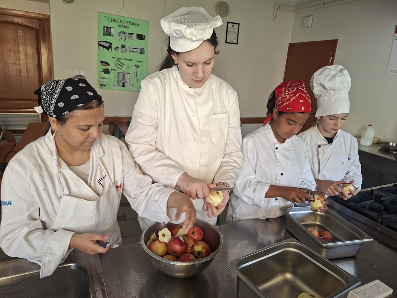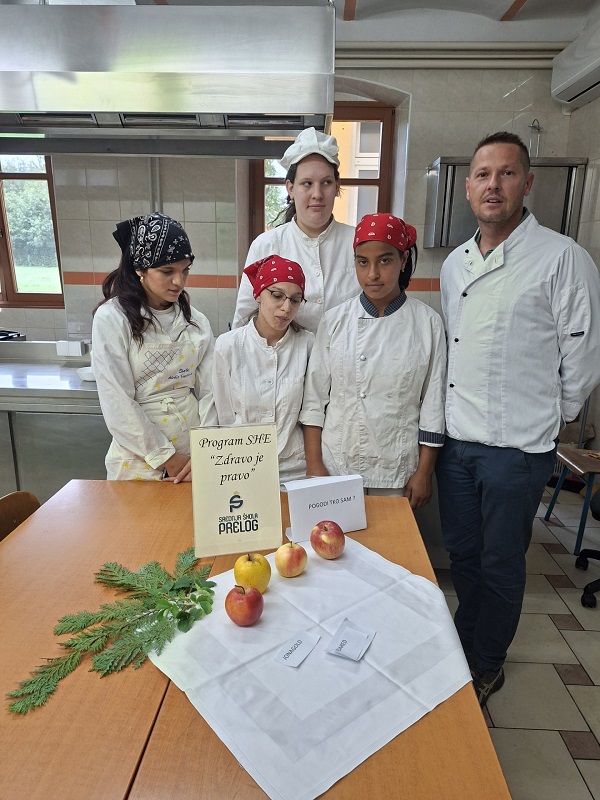 Svjetski dan jabuka, koji se svake godine obilježava 20. listopada, i ove je jeseni zamirisao u Srednjoj školi Prelog. Učenice 3. razreda zanimanja pomoćni kuhar-slastičar pod vodstvom nastavnika Vlade Bogomolca, na vrlo su kreativan i sadržajan način proslavile dan posvećen jednoj od najzdravijih i najomiljenijih voćki na svijetu. Na satu Kuharstva učenice su kroz zanimljivu prezentaciju upoznale važnost jabuke u svakodnevnoj prehrani, različite sorte te mogućnosti njezine primjene — od sokova i kompota, do octa i ukusnih slastica. Uslijedila je edukativna igra „Pogodi tko sam“, u kojoj su učenice povezivale fotografije jabuka s njihovim nazivima i osobinama, a zatim su svoje znanje pretočile u praksu. U školskom praktikumu zamirisale su štrudle od jabuka, jabučna pita, pohane jabuke i domaći kompot.