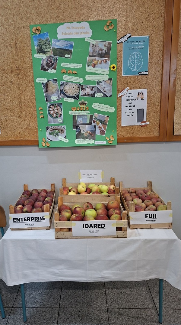 „Posla je bilo puno, ali smo uživale. Jabuka je stvarno čudo — od nje se može napraviti gotovo sve!“, rekla je jedna od učenica dok su posljednje štrudle izlazile iz pećnice. Sve su faze pripreme učenice dokumentirale fotografijama te izradile plakat, imajući pri tom na umu poznatu narodnu izreku: „Jedna jabuka na dan tjera doktora iz kuće van.“ Plakat su potom izložile u školskom holu, a dio jabuka podijelile učenicima i nastavnicima kako bi i njih potaknule na zdravije prehrambene navike. U organizaciji i provedbi obilježavanja ovog dana pomogli su im PG Fileš iz Cirkovljana te OPG „Matić“ iz Čehovca, kojima škola zahvaljuje na podršci i donaciji domaćih jabuka.
