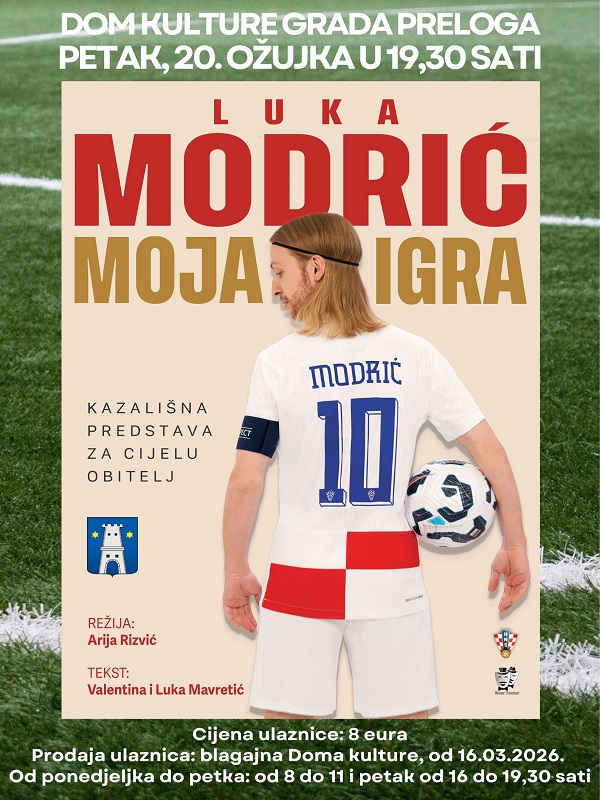 Kapetan hrvatske nogometne reprezentacije Luka Modrić zaigrao je na mnogim svjetskim terenima, a uskoro će zaigrati i na kazališnim daskama Doma kulture Grada Preloga. Predstava je na rasporedu u petak, 20. ožujka, s početkom u 19,30 sati.