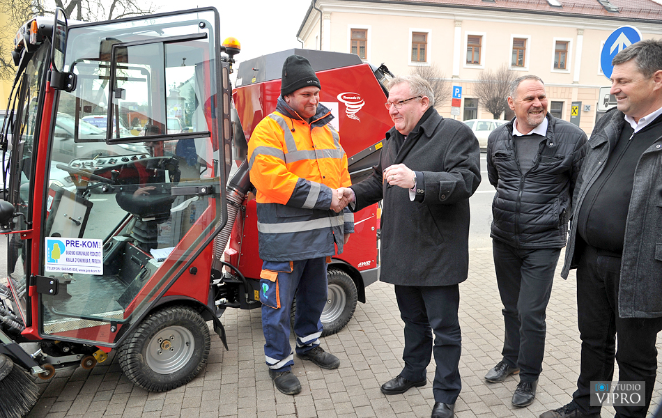 Grad Prelog nabavio je, putem Gradskog komunalnog poduzeća Pre – kom d.o.o., radni stroj za čišćenje malih gradova i općina. Ključeve čistilice je radniku Pre – koma Ivanu Bermancu, uručio gradonačelnik Grada Preloga Ljubomir Kolarek. Cestovna čistilica Timan 3400 danskog proizvođača komunalnih strojeva Timan nabavljena je putem javne nabave vrijedne 552.063,56 kuna sa PDV – om, a isporučio ga je njihov zastupnik za Republiku Hrvatsku, tvrtka O-K-TEH d.o.o. iz Zagreba. Čistilica Timan 3400 je radni stroj za sva godišnja doba i može se koristiti za čišćenje ulica, čišćenje snijega, sakupljanje lišća pomoću usisnog crijeva za lišće ili pranja manjih površina visoktlačnim pištoljem. Nabavljena čistilica koristit će se za čišćenje ulica na području Grada Preloga, ali i na području okolnih općina, jedinica lokalne samouprave uključene u rad Gradskog komunalnog poduzeća Pre – kom d.o.o.