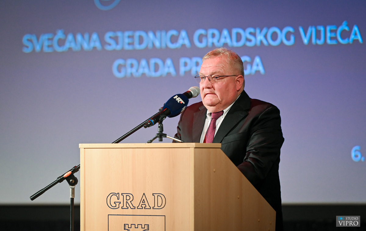 Gradonačelnik Kolarek u svom je obraćanju posebno istaknuo veliki ponos: „Ponosan sam što sam Priločanec. Ponosan sam na svako naselje našeg Preloga. Na naš Cirkovljan, Čehovec, Čukovec, Draškovec, Hemuševec, Oporovec, Otok, Prelog. Ponosan sam što smo vodeća sredina u Hrvatskoj što se tiče zbrinjavanja otpada. Ponosan sam što krećemo u gradnju zaobilaznice. Ponosan sam što su naši vrtići puni, što dograđujemo vrtić u Draškovcu. Ponosan sam što nam nedostaje mjesta za gradnju gradilišta. Ponosan sam što nam se bliži gradnja trgovačkog centra u Prelogu. Ponosan sam što u Prelogu radi i zarađuje za život gotovo pet tisuća ljudi. Ponosan sam što mogu izaći pred svakog čovjeka u Prelogu. Što, iako me zbog toga često kritiziraju, želim pomoći i saslušati probleme svakog čovjeka. Ne mogu uvijek svima pomoći, ali pokušavam koliko mogu. Ponosan sam na svoju obitelj, ponosan sam što se i ove godine obraćam kao gradonačelnik Grada Preloga. Za mene nema veće časti“. Odgledan je Priločki dnevnik, gdje su kroničari Preloga pobrojali brojna događanja na području Preloga u 2023. godini. Svim su se nazočnima obratili Marijan Varga, načelnik Općine Donja Dubrava, ispred susjednih međimurskih općina, župan Matija Posavec, izaslanik predsjednika Sabora Republike Hrvatske Dražen Srpak, video javljanjem Sunčana Glavak, zastupnica u Europskom parlamentu te na kraju predsjednik Vlade Republike Hrvatske Andrej Plenković.