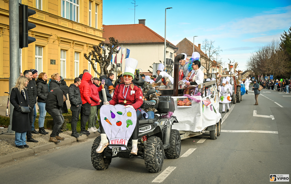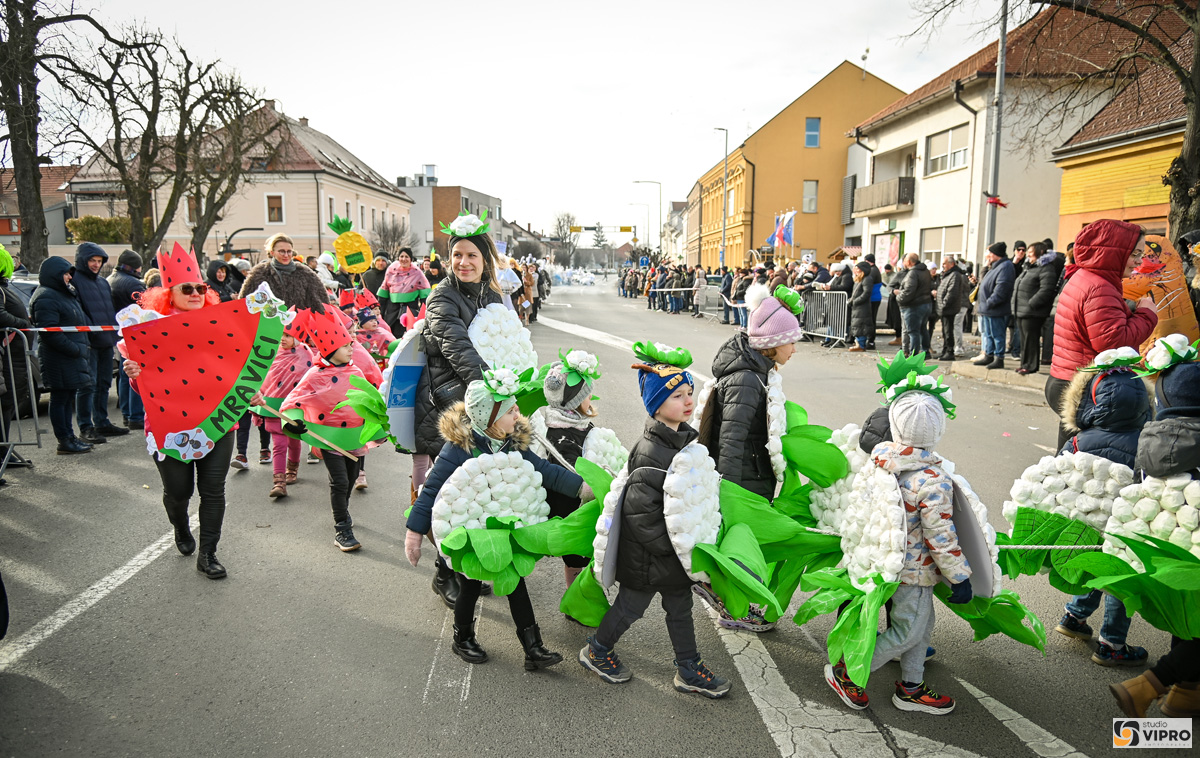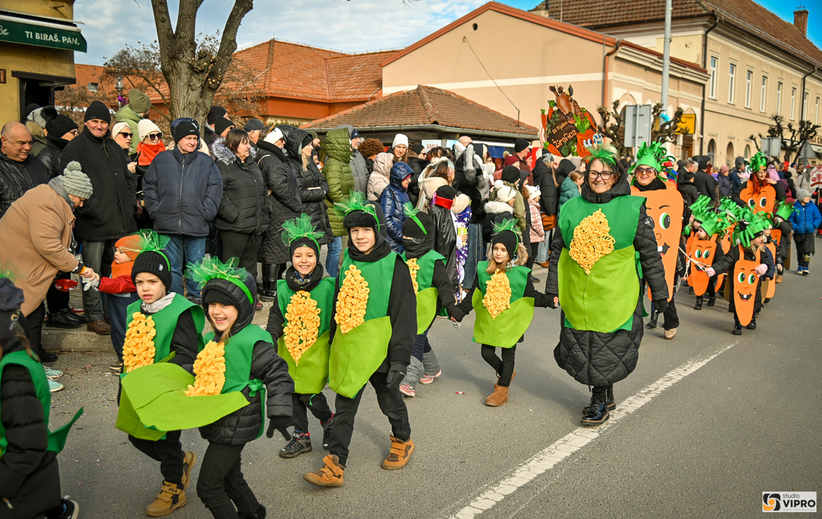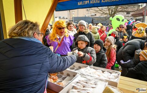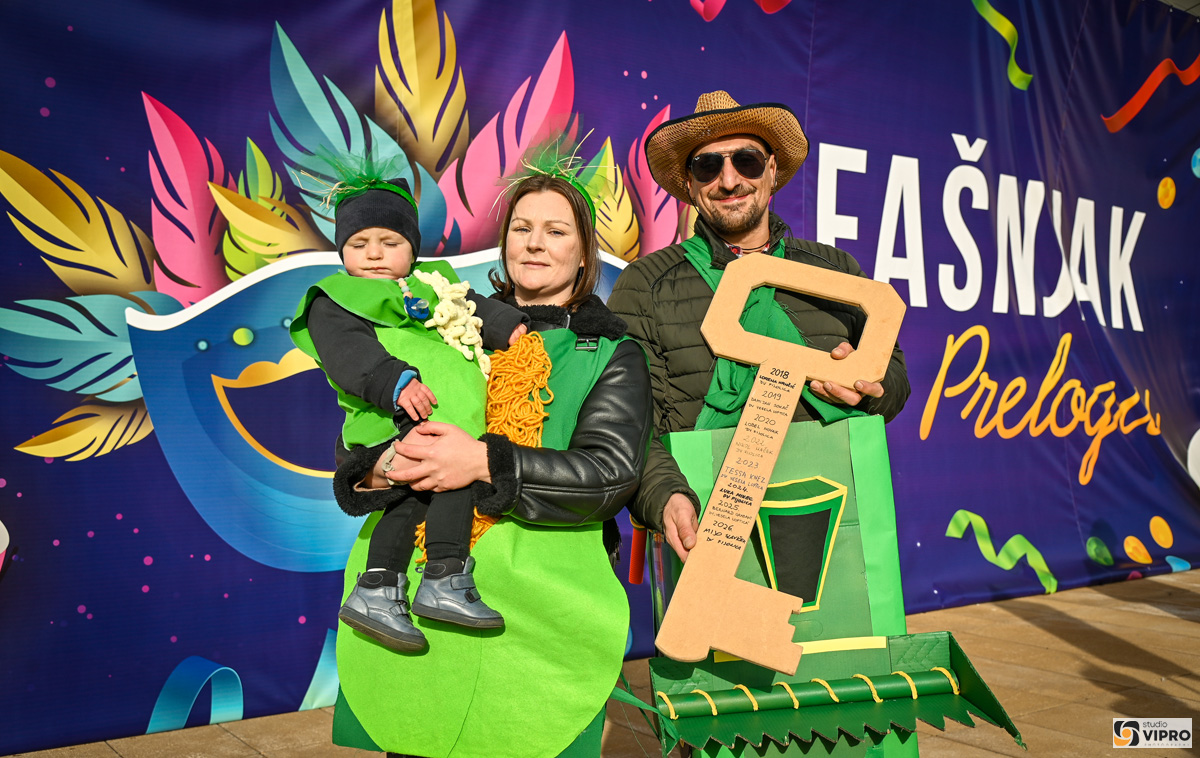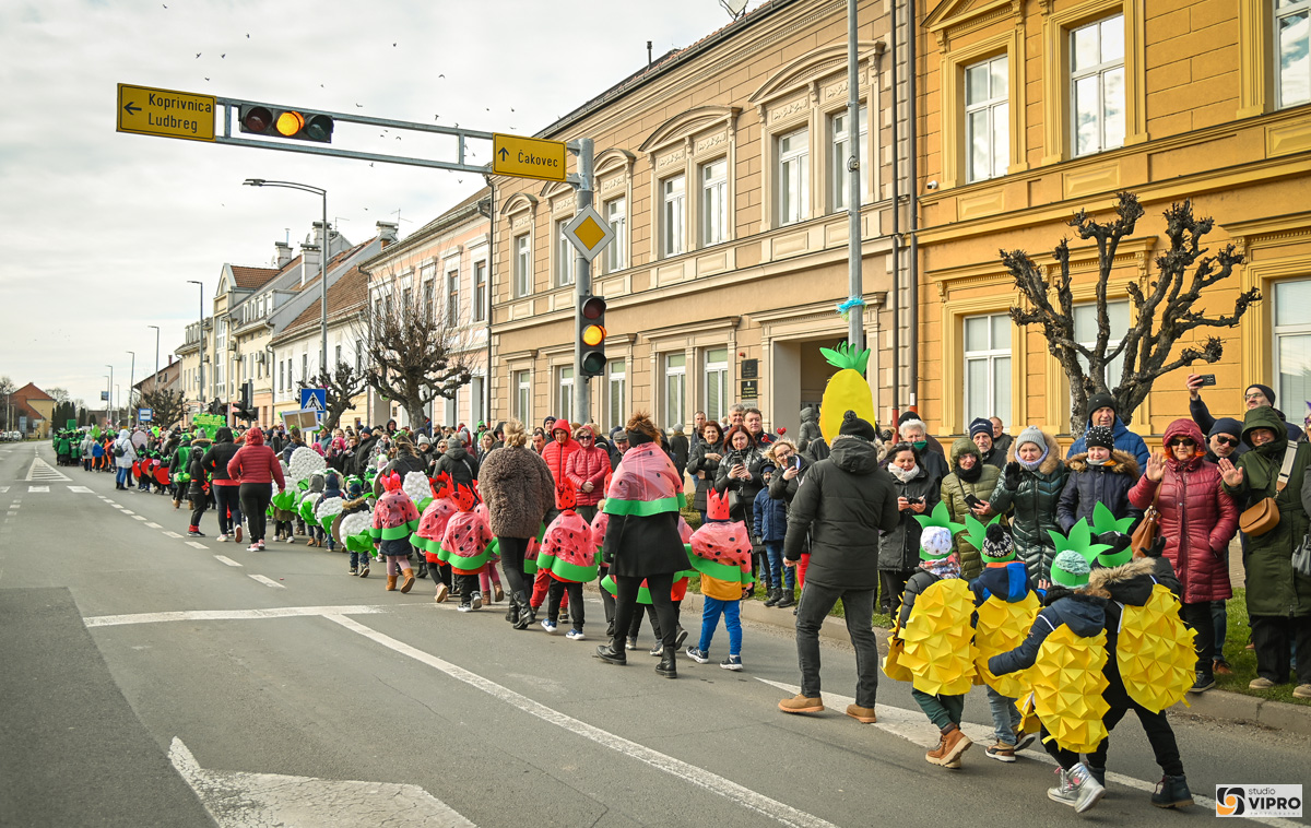 Najveći dio povorke u Prelogu činili su mališani iz Dječjeg vrtića Fijolica (u skladu sa svojim Healthy Meal standardom predstavili su se maskama zdrave hrane) te Dječjeg vrtića Vesela loptica (predstavili su se maskama 101 Dalmatinca), a u povorci su se našli i nojevi, labudovi, kuhari, Asterix i Obelix, dame iz Venecije, prava domaća svadba malih članova Kulturne udruge Seljačka sloga Prelog. Sve su predvodili posebni gosti, Marko Perković Thompson, čiju pjesmu nije uspio zaustaviti ni Tomislav Tomašević, jer je na pozornicu stigao i premijer Andrej Plenković. Gradonačelnik Ljubomir Kolarek predao je ključeve grada, a primio ih je Mijo Slaviček, najmlađa maska, iz Dječjeg vrtića Fijolica Prelog, Područnog odjeljenja Draškovec. Maškare su obećale paziti na Grad Prelog, a pogotovo na gradsku blagajnu: „Probali bomo se i nadale držati reda kaj mu našu priločku republiku, vrnemo v tork, ili najkesneše v sredu v jutro, lepšu i složnišu neg je bila dok nam ju je predal“. Turistička zajednica Grada Preloga osigurala je krafne i čaj za sve sudionike maskirane povorke.