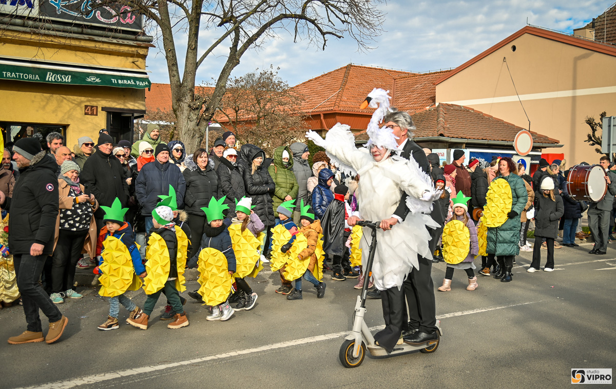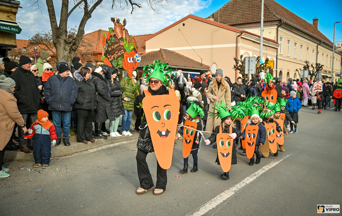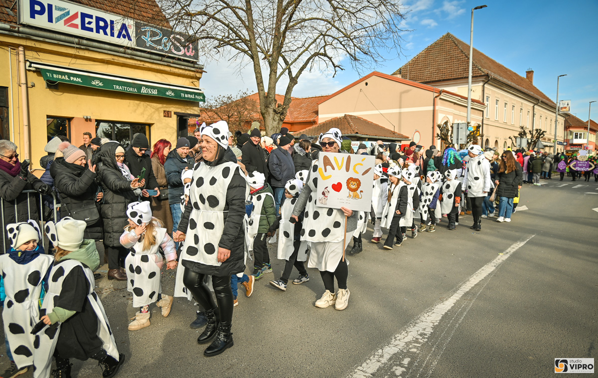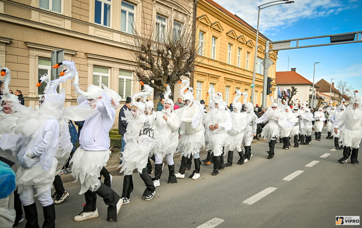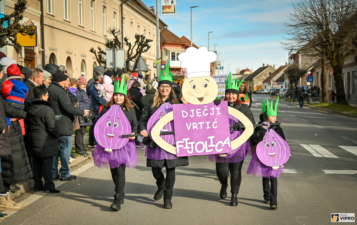 Najveći dio povorke u Prelogu činili su mališani iz Dječjeg vrtića Fijolica (u skladu sa svojim Healthy Meal standardom predstavili su se maskama zdrave hrane) te Dječjeg vrtića Vesela loptica (predstavili su se maskama 101 Dalmatinca), a u povorci su se našli i nojevi, labudovi, kuhari, Asterix i Obelix, dame iz Venecije, prava domaća svadba malih članova Kulturne udruge Seljačka sloga Prelog. Sve su predvodili posebni gosti, Marko Perković Thompson, čiju pjesmu nije uspio zaustaviti ni Tomislav Tomašević, jer je na pozornicu stigao i premijer Andrej Plenković. Gradonačelnik Ljubomir Kolarek predao je ključeve grada, a primio ih je Mijo Slaviček, najmlađa maska, iz Dječjeg vrtića Fijolica Prelog, Područnog odjeljenja Draškovec. Maškare su obećale paziti na Grad Prelog, a pogotovo na gradsku blagajnu: „Probali bomo se i nadale držati reda kaj mu našu priločku republiku, vrnemo v tork, ili najkesneše v sredu v jutro, lepšu i složnišu neg je bila dok nam ju je predal“. Turistička zajednica Grada Preloga osigurala je krafne i čaj za sve sudionike maskirane povorke.
