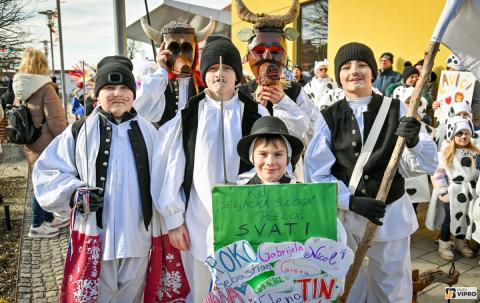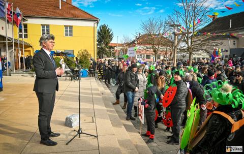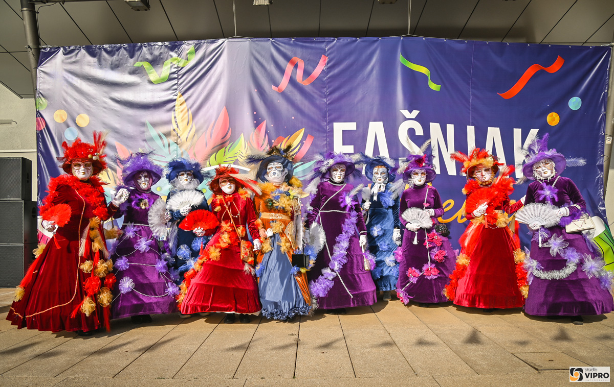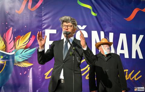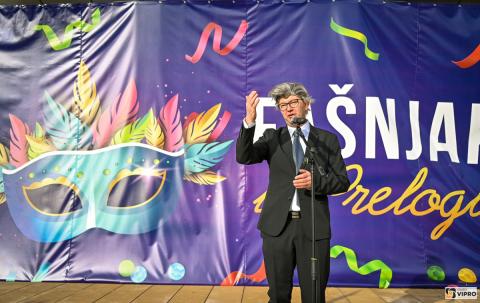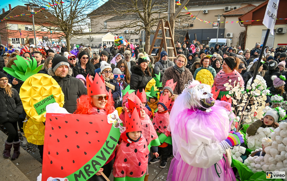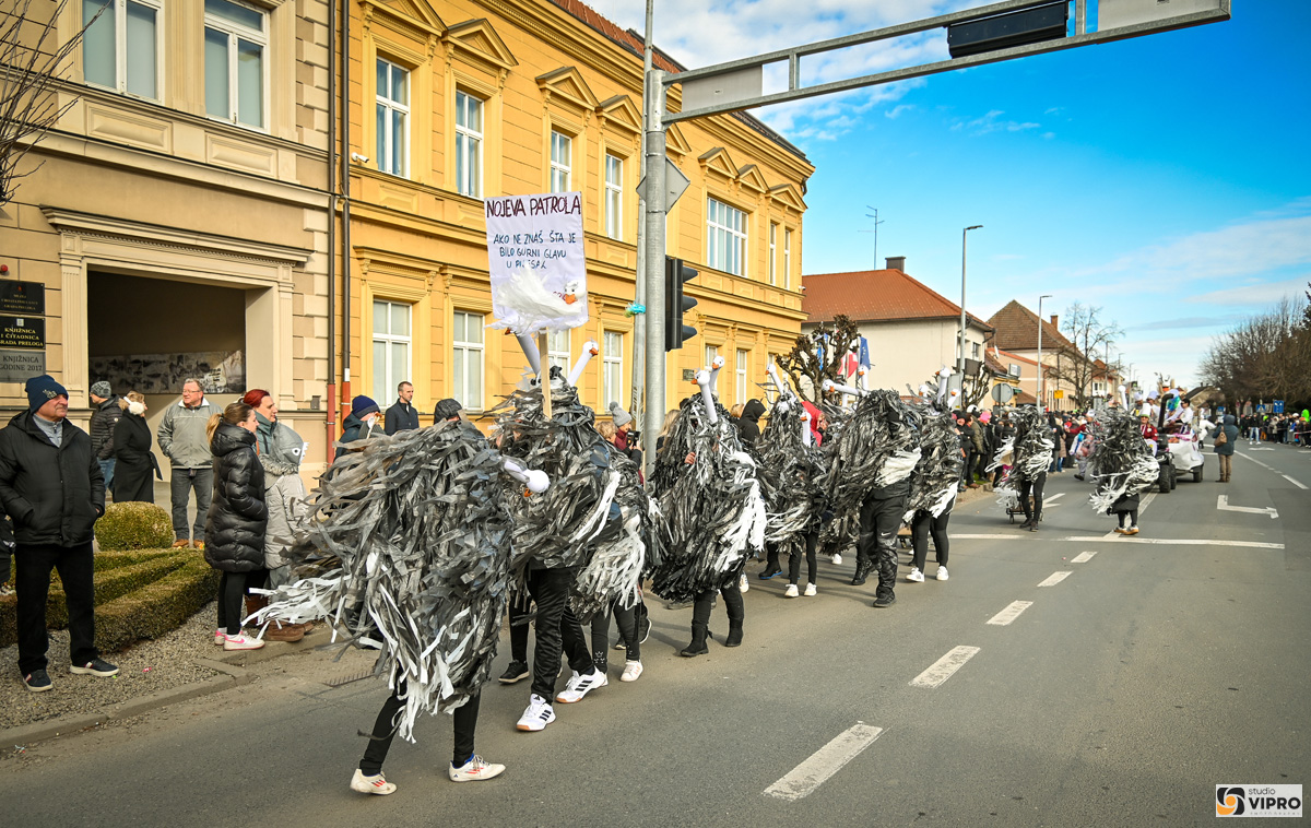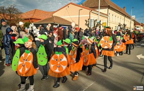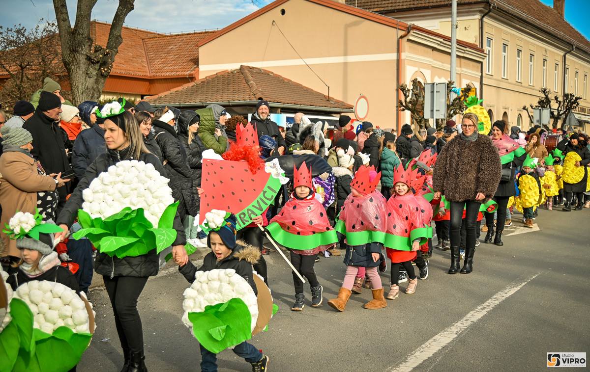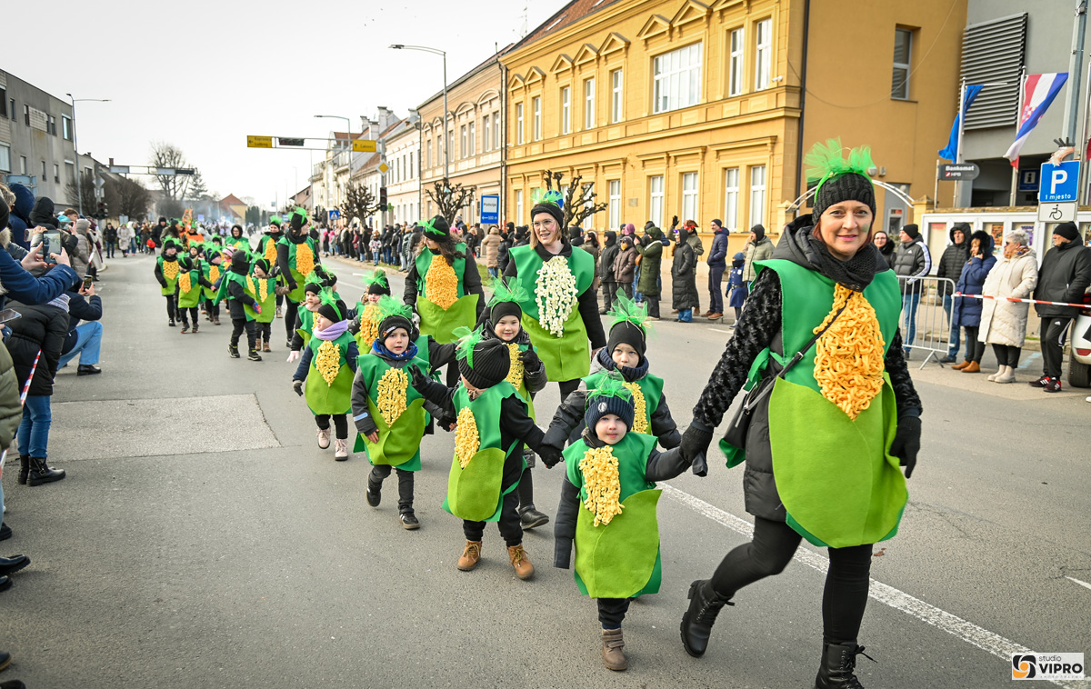 Najveći dio povorke u Prelogu činili su mališani iz Dječjeg vrtića Fijolica (u skladu sa svojim Healthy Meal standardom predstavili su se maskama zdrave hrane) te Dječjeg vrtića Vesela loptica (predstavili su se maskama 101 Dalmatinca), a u povorci su se našli i nojevi, labudovi, kuhari, Asterix i Obelix, dame iz Venecije, prava domaća svadba malih članova Kulturne udruge Seljačka sloga Prelog. Sve su predvodili posebni gosti, Marko Perković Thompson, čiju pjesmu nije uspio zaustaviti ni Tomislav Tomašević, jer je na pozornicu stigao i premijer Andrej Plenković. Gradonačelnik Ljubomir Kolarek predao je ključeve grada, a primio ih je Mijo Slaviček, najmlađa maska, iz Dječjeg vrtića Fijolica Prelog, Područnog odjeljenja Draškovec. Maškare su obećale paziti na Grad Prelog, a pogotovo na gradsku blagajnu: „Probali bomo se i nadale držati reda kaj mu našu priločku republiku, vrnemo v tork, ili najkesneše v sredu v jutro, lepšu i složnišu neg je bila dok nam ju je predal“. Turistička zajednica Grada Preloga osigurala je krafne i čaj za sve sudionike maskirane povorke.