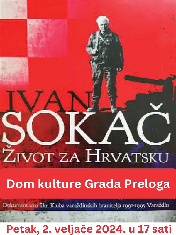 Grad Prelog i Klub varaždinskih branitelja 1991.-1995. Varaždin pozivaju na prikazivanje filma o ratnom heroju, Ivanu Sokaču. Dokumentarni film “Ivan Sokač – Život za Hrvatsku” o životu ovog heroja Domovinskog rata, biti će prikazan 2. veljače, u petak od 17 sati, u Domu kulture Grada Preloga.