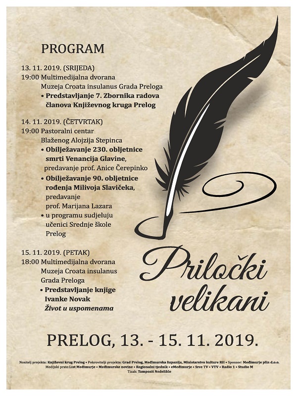 Budućnost jednog mjesta, jednog naroda, svoje početke ima u pisanoj riječi koju su stvarali pojedinci. Književni krug Prelog okuplja upravo takve pojedince, koji svojim pisanim stvaralaštvom nastoje otrgnuti od zaborava ne samo događaje već i riječi kojih danas više nema. Svatko na svoj način. Neki pjesništvom, neki prozom, neki dramskim pismom. Svoje misli i promišljanja stavljaju na papir. Prije njih i prije samog osnutka Udruge postojali su neki drugi čija imena ne smijemo zaboraviti jer su obilježili vrijeme u kojem su živjeli ali i svojim djelovanjem izašli izvan granica Preloga i Međimurja. Nositelj projekta „Priločki velikani“ je Književni krug Prelog, voditeljica projekta je profesorica Mirjana Hržić, a pokrovitelji projekta su Grad Prelog, Međimurska županija te Ministarstvo kulture Republike Hrvatske. Ovim projektom organizatori žele dati priliku živim ljudima da predstave svoje stvaralaštvo, ali i obilježiti i sjetiti se značajnih imena iz prošlosti.