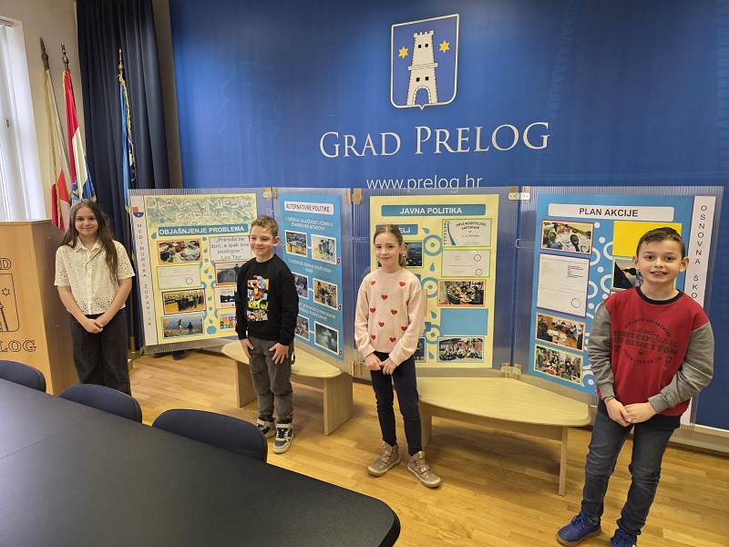 Svoj projekt „Drava umjesto ekrana“ predstavili su, u prostoru Gradske vijećnice Grada Preloga, učenici 3b razreda Osnovne škole Prelog. Ovim projektom, u sklopu metode "Projekt građanin", predstavit će se na Županijskoj smotri projekata iz područja građanskog odgoja i obrazovanja i drugih međupredmetnih tema iz nastavnog programa osnovnih i srednjih škola. Projekt su predstavili Bruna Vuk, Noa Čižmešija, Agata Štefičar i Fran Fileš, uz svog učitelja Nenada Podgorelca, a sve su pozorno pratili Marko Židov, direktor Turističke zajednice Grada Peloga te Željko Sokač iz Uprave Grada Preloga. Kroz metodu "Projekt građanin", učenici istražuju konkretne probleme u svojoj zajednici, analiziraju postojeće javne politike i predlažu rješenja koja prezentiraju na smotrama. „Sreća – to je biti s prirodom, gledati je i s njom govoriti“. Ovim citatom Lava Nikolajeviča Tolstoja završili su svoju zanimljivu priču Bruna, Noa, Agata i Fran, učenici 3b razreda Osnovne škole Prelog.