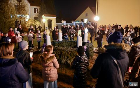 Uz molitvu i pjesmu Mješovitog pjevačkog zbora Župe sv. Jakoba ap.st., upaljena je druga svijeća na adventskom vijencu u Prelogu, postavljenom već tradicionalno na Trg sv. Jakoba. Kršćani su do srednjeg vijeka usvojili običaj praviti vijence o Božiću te su ih počeli koristiti kao dio duhovnih priprema za Božić jer prema Bibliji, “Krist je svjetlo svijeta”. Ipak, prema nekim izvorima smatra se da je prvi adventski vijenac, najbliži onome kakav poznamo danas, osmislio protestantski pastor, osnivač doma za siromašnu djecu u Hamburgu, Johann Hinrich Wichern 1839. godine. Budući da su ga djeca stalno propitkivala kada će Božić, konstruirao je drveni krug od kotača zaprežnih kola na koji je stavio 19 malih crvenih i četiri velike bijele svijeće. Svaki bi dan palio po jednu crvenu, a bijele nedjeljom kako bi djeca bolje pratila približavanje dugoočekivanog blagdana. Taj je običaj uskoro našao svoje mjesto u protestantskim crkvama diljem Njemačke, a veliki je vijenac polako evoluirao u manji s 4 ili 5 svijeća. U dvadesetim godinama prošlog stoljeća postao je i dio rimokatoličke tradicije. Drugu ljubičastu, svijeću Betlehema, koja simbolizira Kristove jaslice, a predstavlja ljubav, upalili su ovogodišnji prvopričesnici Župe sv. Jakoba, zajedno sa svojim roditeljima.