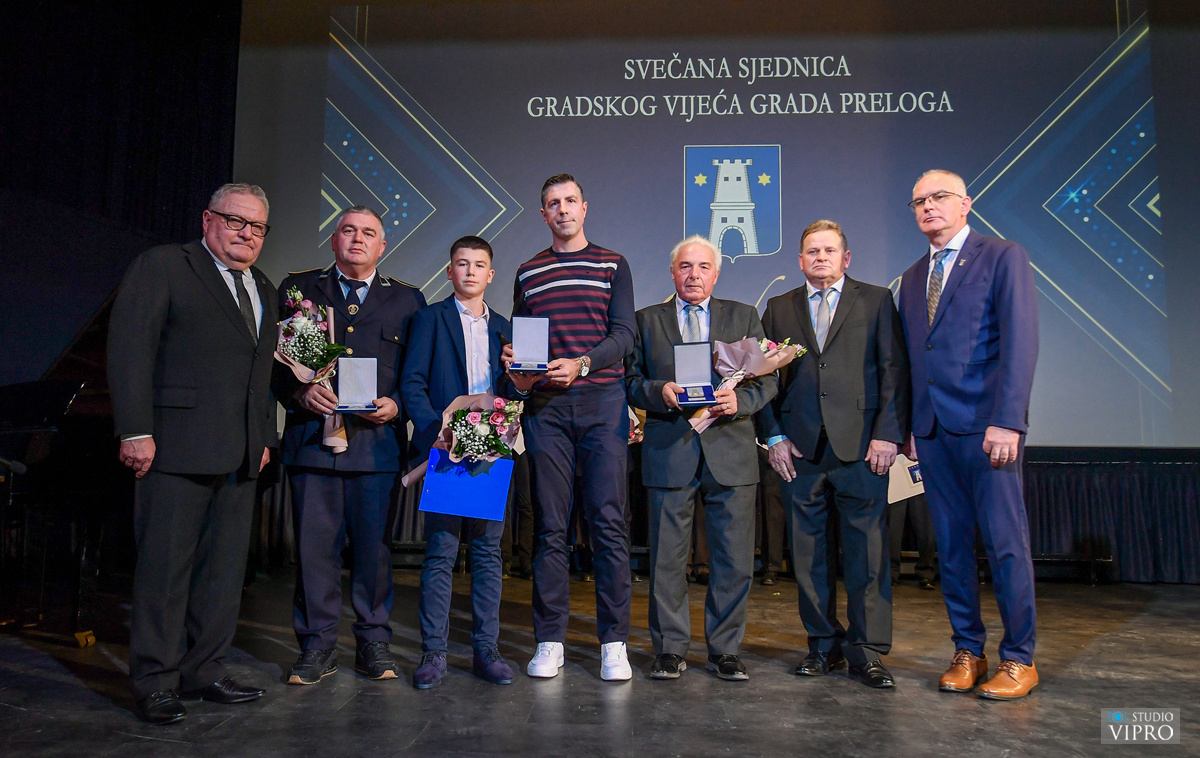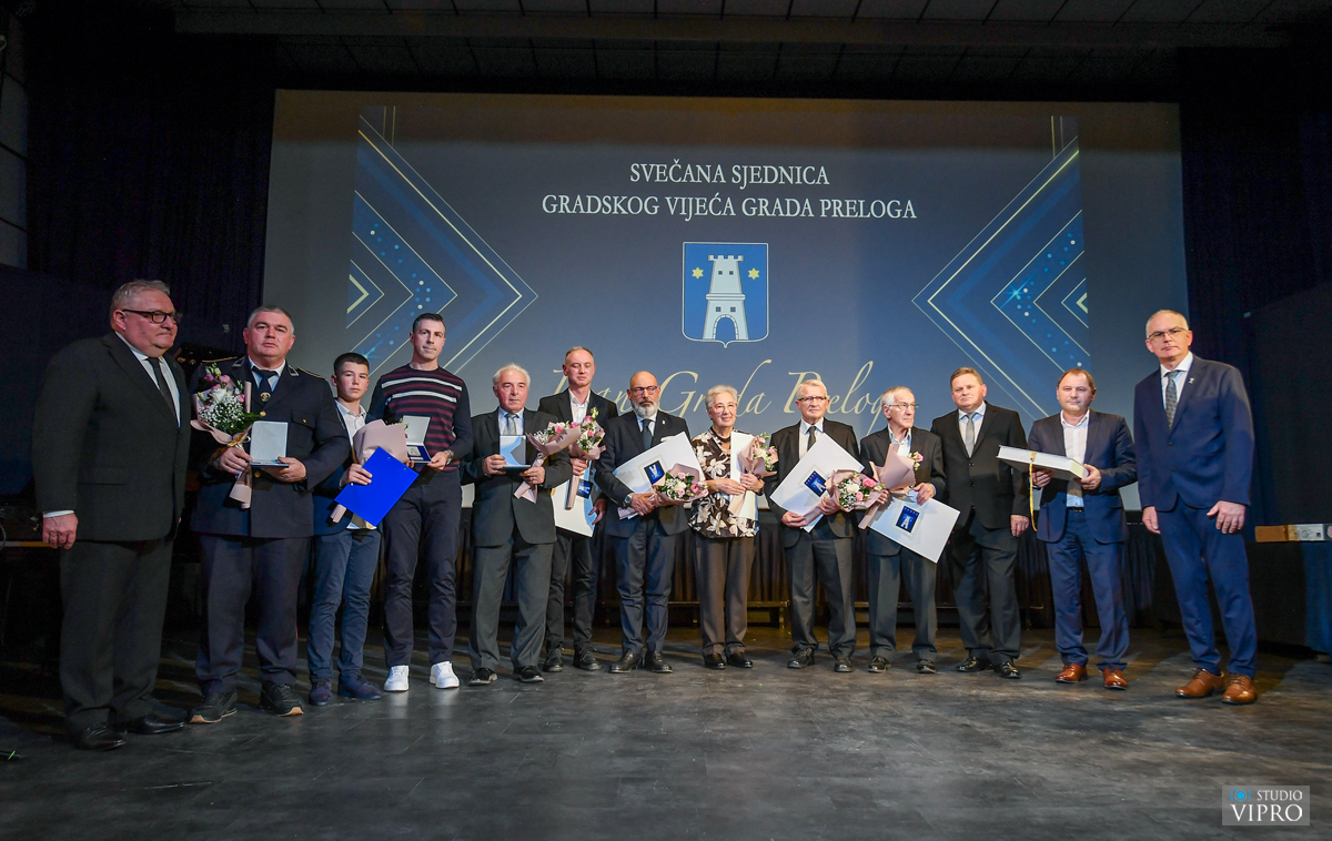 Dodijeljena su i javna priznanja Grada Preloga za 2025. godinu. Tako su Plaketu Grada Preloga primili Nogometni klub ČSK – a iz Čehovca, Francesco di Notto, Stjepan Pongračić, Marija Bermanec i Franjo Novak, a Grb Grada Preloga primili su Dragutin Švenda, Dobrovoljno vatrogasno društvo Prelog te Osnovna škola Draškovec. Nagrade su uručili gradonačelnik Kolarek, predsjednik Gradskog vijeća Dražen Novak te zamjenik gradonačelnika Zdravko Kvakan, a u ime svih nagrađenih zahvalio je najmlađi, predsjednik Vijeća učenika Osnovne škole Draškovec Leon Marđetko. Posebnom čestitkom, gradonačelnik Kolarek zahvalio je dugogodišnjem načelniku Policijske postaje Prelog Policijske uprave međimurske Zdravku Kolariću na njegovom radu na podizanju sigurnosti na području Grada Preloga u prošlim godinama. Tradicionalno, čestitku najmlađih stanovnika Preloga, svom je gradu uputio Bartol Sokač, ispred Društva Naša djeca Prelog. Kulturno umjetnički program bio je posvećen međimurskoj popevki, a neke od najljepših međimurskih pjesama otpjevali su Tena Panić, Vanessa Kralj, Pjevački zbor Udruge umirovljenika Prelog te Pjevački zbor Grada Preloga.